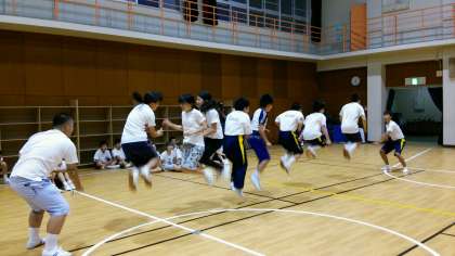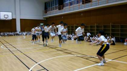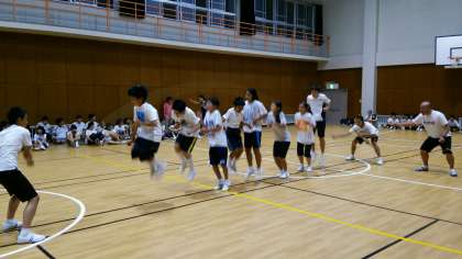 学級から10人が選抜され二人が縄を持ちます。回数を競います。