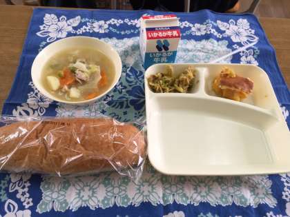 6月12日(月)の給食は、豚肉と野菜のスープ煮、カレーソテー、ミックスフルーツのクラフティ、ライ麦パンです。クラフティとはフランスの伝統菓子で、あまりをだれが食べるかじゃんけんで決めています。