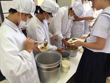 写真は3年1組の配膳の様子です。ほとんど余すことなく、上手に配膳できました。1年間の成果かスピードもあがってきています。