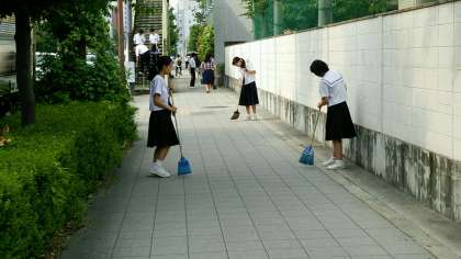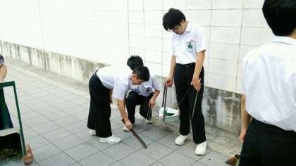 二組が担当です。校内では、渡り廊下の砂を丁寧に集めています。校外では、様々なごみがいつも多いですね。通行人の意識の低さでしょうか、生徒の皆さんご苦労さんです。