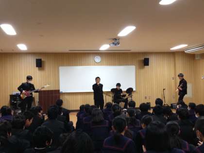 3年生は、3月14日(金)に卒業式を迎えます。大淀中学校でともに学んだ仲間とのお別れ会を、本日5限目に行いました。生徒たちは、中学校生活3年間を振り返る映像を見て、あらためて自分の成長を実感していました。2部では、生徒有志が「バンド演奏」「ダンス」で出演し、3年生の教員も「話」や「パフォーマンス」で参加して、お別れ会が盛りあがりました。