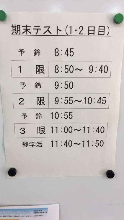本日から、期末テストが始まりました。1限英語 2限社会 3限美術です。