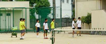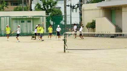 期末テスト(1日目)終了後、テニス部が7月1日(土)に開催される『大阪中学校テニス選手権大会 兼 近畿大会予選会』に向けて熱心に練習に励んでいました。限られた時間内での練習とあって、ボール回収の姿にも緊張感が伝わってきます。