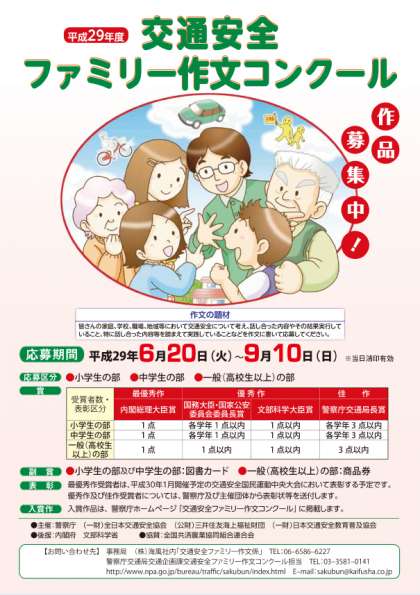 警察庁より『交通安全ファミリー作文』のご案内がありました。