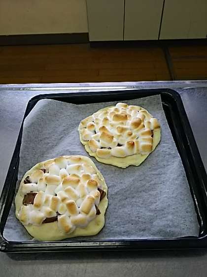 マシュマロピザは部員も思わず「美味しい!!」の声。みなさんも一度試してほしいピザです。