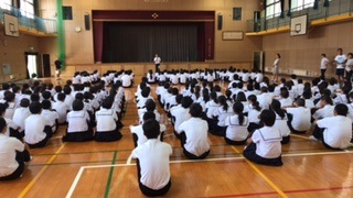 本校の伝統行事。地区奉仕活動の説明会を行いました。大淀中学校校区の公園を中心とした18ヶ所に地域別に班編成を行い、清掃活動を行います。今年度は、地域の方々とタイアップして行います。