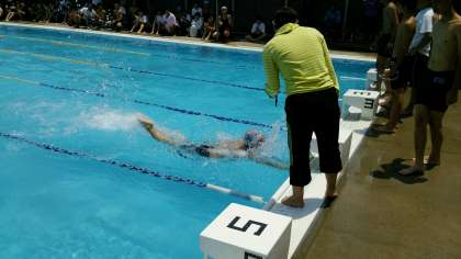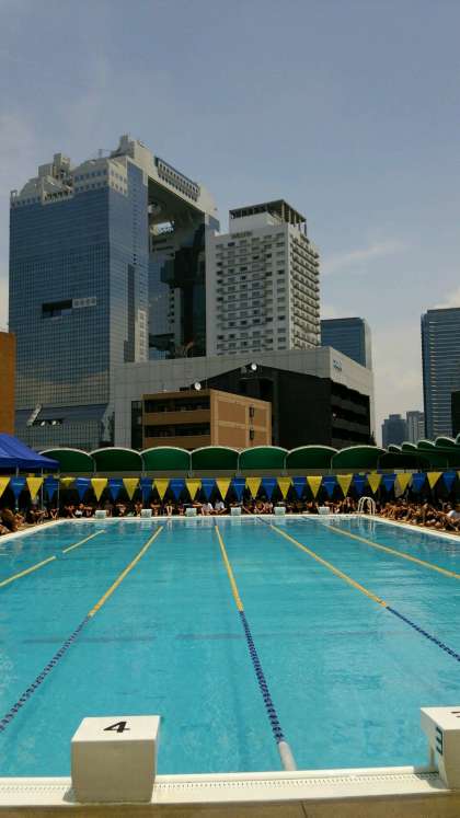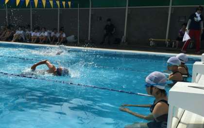 学級選抜、水泳の得意な生徒で編成されたリレー競技です。白熱したその声援は道路を超えたセブンイレブンまで届くほどでした。写真でその様子が伝えられないのが残念です。
