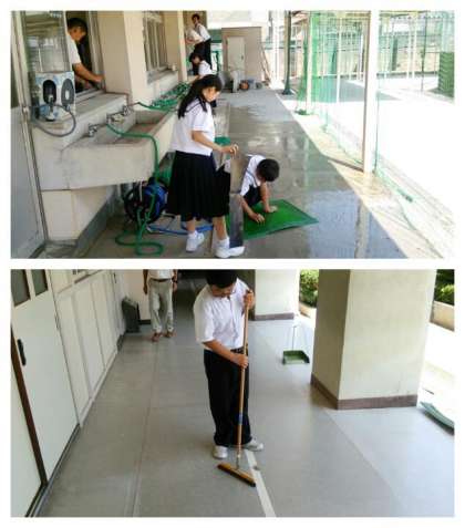 教員も一緒になり清掃します。