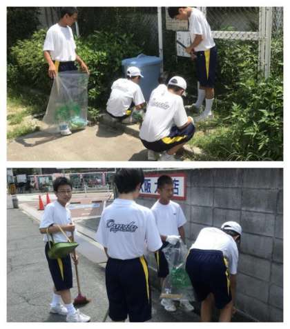 終業式のあと、全校生徒が地域に出向き地域に住む方々と清掃を行う伝統行事です。