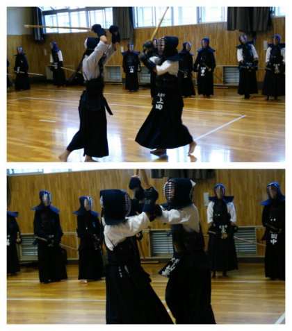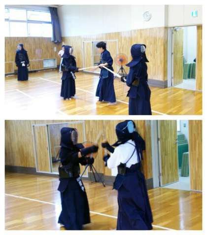 剣道部が夏季大会を27日(木)・28日(金)に控えて、熱心に練習に励んでいました。2ヶ所に分かれ、二人の顧問が審判となり試合形式で練習を行っていました。