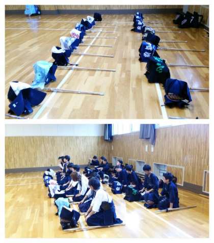 剣道部の休憩の姿にも武道の礼儀正しさが表れていました。激しい練習の後でも道具は整然と並べられ、落ち着いて行動する姿に貴賓を感じました。