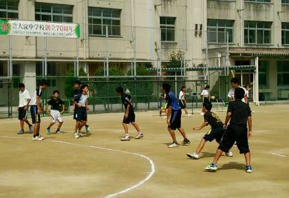 昨日ベスト4に入った男子ハンドボール部が朝から調整のため、練習で汗を流していました。