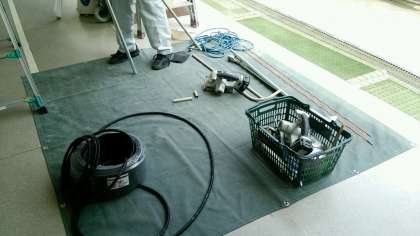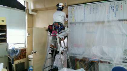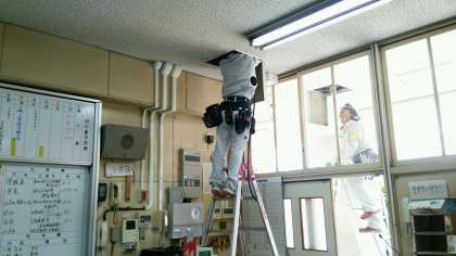 体育館以外のほとんどの部屋に設置されるため、校内は工事関係者だらけです。