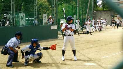 初回、二点を奪われたものの二回には四球等で満塁からレフトオーバーによる三塁打で逆転。その後もタイムリーヒットでこの回、四点をとり逆転しました。