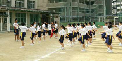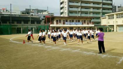 1年生が初めて学年練習を行いました。集団行動の基本を繰り返し、体育大会の入場行進の練習を行いました。リズムに足が合わない、列が乱れる、気をつけができないなど、課題は少なくありません。繰り返し練習を行い、上級生の姿に習い、向上していきます。