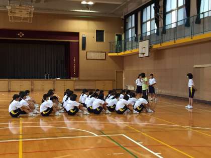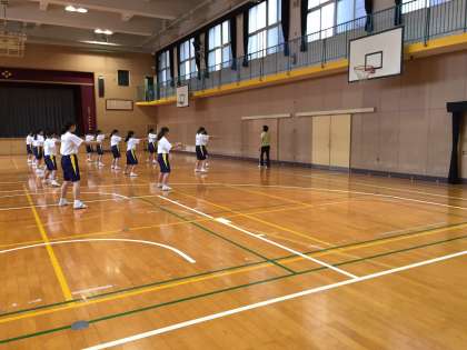 3年生女子は体育大会の集団演技の練習です。ほぼ出来上がっていますが、残り2週間で細かい部分をつめていきます。