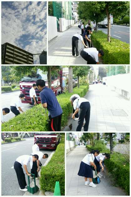 大阪医専の実習生も一緒に清掃に励みます。「車道は危ないよ」と、声をかけていました。