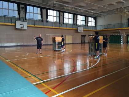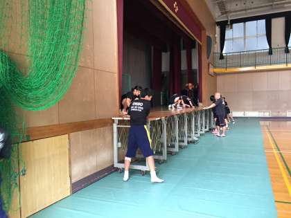 グラウンドでは体育大会の準備をしていますが、体育館では張り出し舞台をつけて、文化祭への準備をしています。