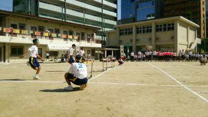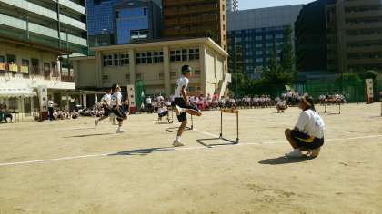 ハードルは跳ぶと言うよりも跨ぎ越えるイメージが大切。いかに50m 走のタイムに近づけるか。