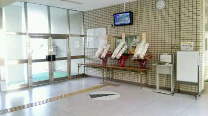 70周年記念式典のお祝いにと、本校にお花を添えていただきました。