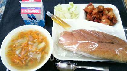 本日は、まぐろのオーロラ煮とじゃがいものスープにサワーキャベツが付いていました。