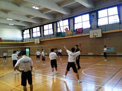校内において、小中学校の先生を交えた「校種間連携研修」を行いました。保健体育科の進藤先生が2年生男子を対象にしてバレーボールの授業を行いました。