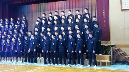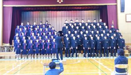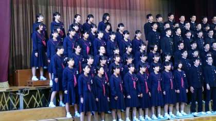 体育館に素晴らしい歌声を響かせ「故郷(ふるさと)」を熱唱です。