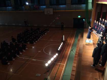 明日の文化祭に向けて、1限は3年生が、2限は1年生が、34限は2年生がリハーサルを行います。写真は1年生です。