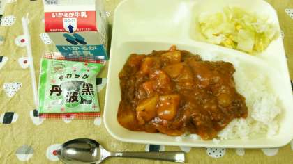 いつもの給食に比べると、少し物足りない感がしますが、栄養は十分です。