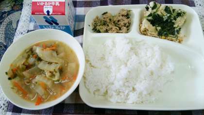 本日は千草焼きにツナっ葉いためと味噌汁が付いていました。