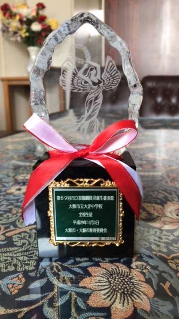 市長表彰で受賞されました記念の盾です。おめでとうございます。