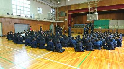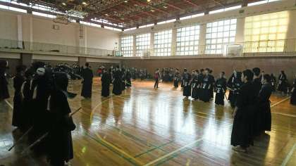 大阪市内の中学校が数多く集まり、寒さに負けず練習試合を中心に一日中錬成会を行いました。