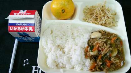 本日は、中華丼にもやしの中華あえとみかんが付いていました。
