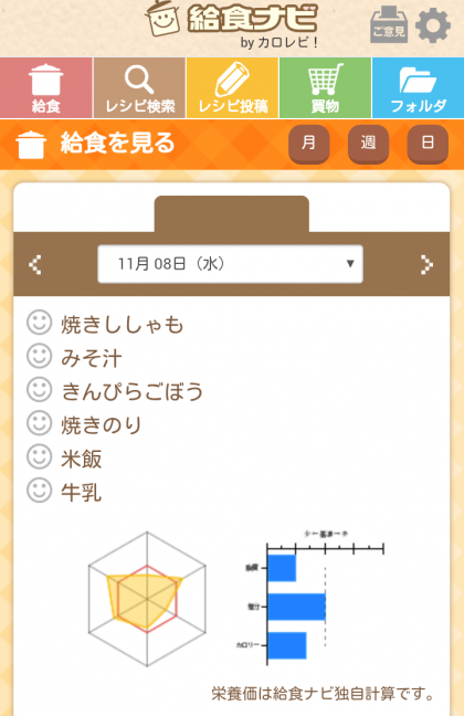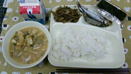本日は、焼きししゃもにきんぱらごぼうと焼きのり、みそ汁でした。
