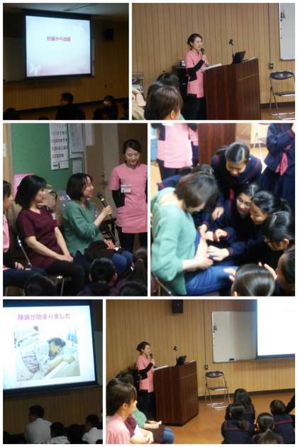 「生命誕生」をテーマとして、中津済生会病院の助産師のみなさんが講師となって、映像を交えてご講話くださいました。