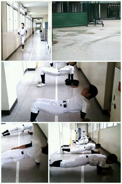 野球部が大会を控えている関係で二階廊下を優先的に使用させてもらっています。