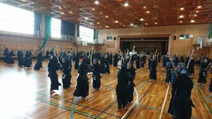 美津島中学校において剣道の12月合同錬成会が行われ多数の学校が集まりました。