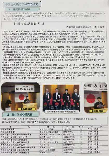 大淀税務署が発行している『大淀納税だより』に、先日大淀税務署長賞を受賞した西川くんの受賞作文が掲載されました。