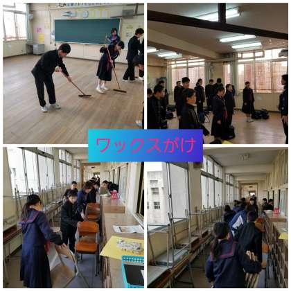 係生徒が手際よく机椅子を廊下へ運び出します。教室ではきれいに隅々まで掃き掃除が行われています。大淀生徒の清掃活動は立派です。