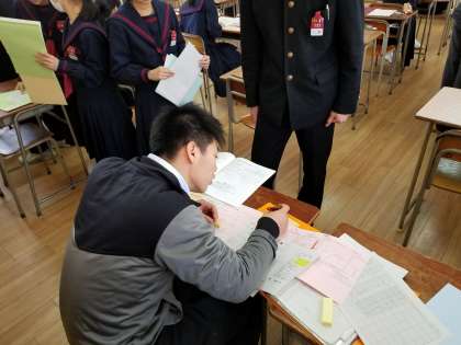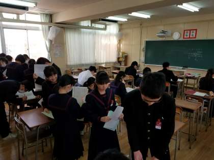 私立高等学校を受験する生徒を対象に願書の記入について、学級担任が中心になり指導しました。