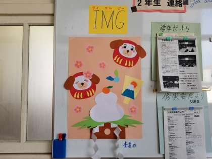 2年生の学年掲示板が新年(正月)バージョンに更新されました。