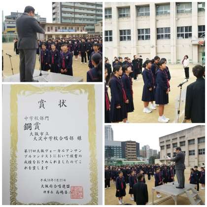 合唱部が21日(日)に行われた大阪府合唱連盟主催の『第17回大阪ヴォーカルアンサンブルコンサート』において、銅賞に輝きました。