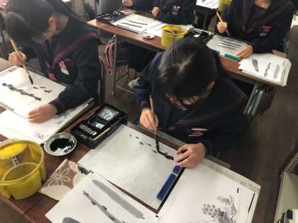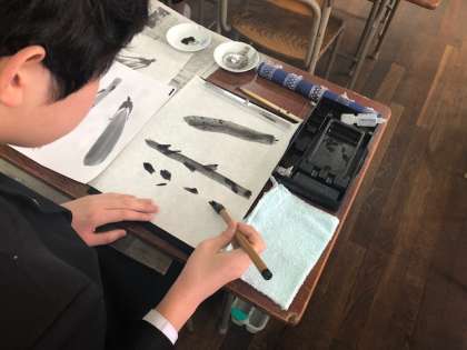 「いつもの美術の授業とは違い、筆の感覚を感じながらやっています」という感想がありました。