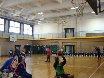 普段ならリングまで簡単にシュートできるのですが、車椅子からとなると全く届きません。