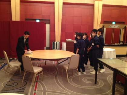 ※画像は、「ホテル阪神」2日目の宴会場におけるテーブルセッティングの様子です。
