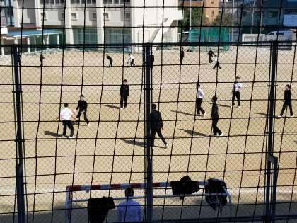 昼休みの運動場、暖かさに誘われてか、たくさん男子生徒がボール遊びをしていました。
