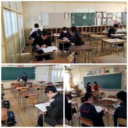公立高校受験に向けて、放課後の教室では自己申告書作成に取りかかっていました。
