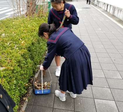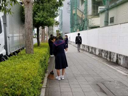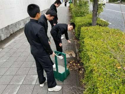 そんな状況でも友人と協力し、歩道をきれいにしています。