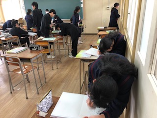 来週の卒業式にはまだ早いですが、本日5限に卒業アルバムを3年生に配布しました。教室と廊下ではメッセージの交換が行われていました。
