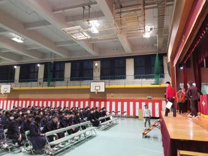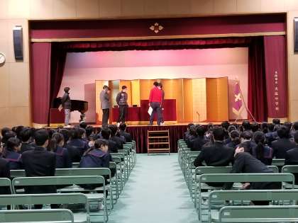 1.2限は三年生のみで繰り返し個人の所作や歌等を練習します。 3.4限には下級生を交えて予行を行います。